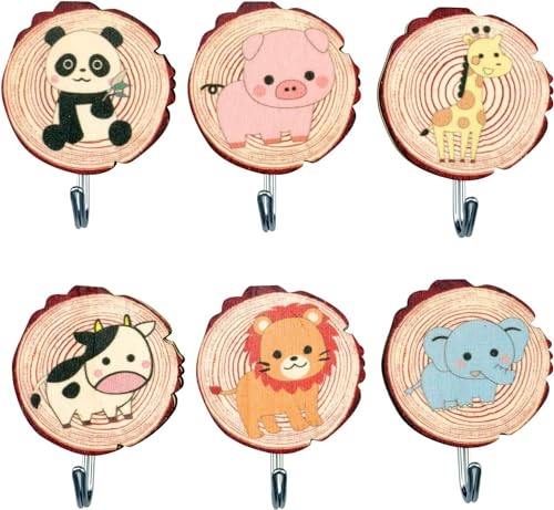 Parallower 6 Pièces Crochets Porte Enfant Bois Animaux Pater...