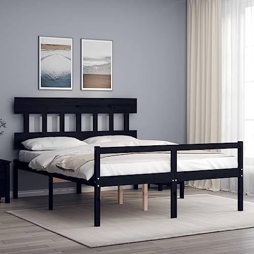 Cadre de lit en bois massif noir, simple/double.