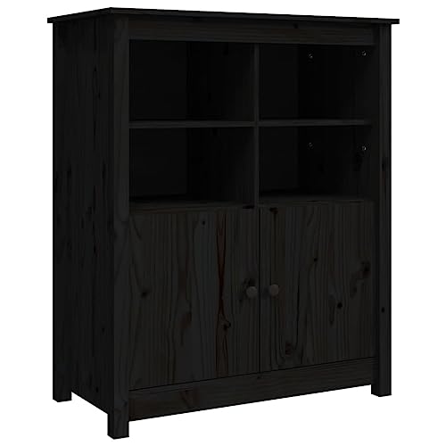 Makastle Armoire Latérale Noir 83x41.5x100 cm Bois Massif
