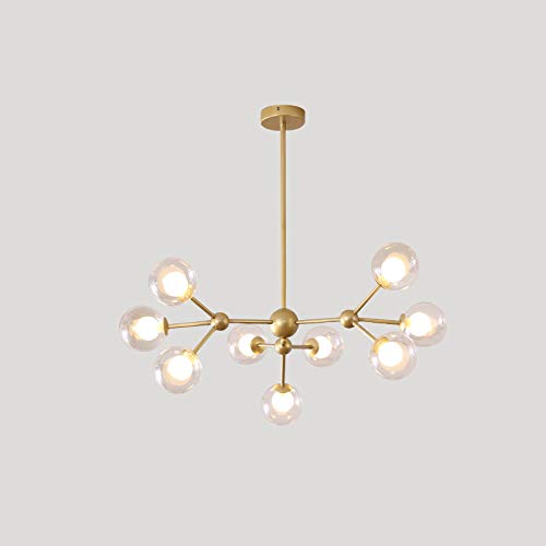 HVEJOU Lustre Spoutnik 9 têtes, abat-jour verre, haricot mag...