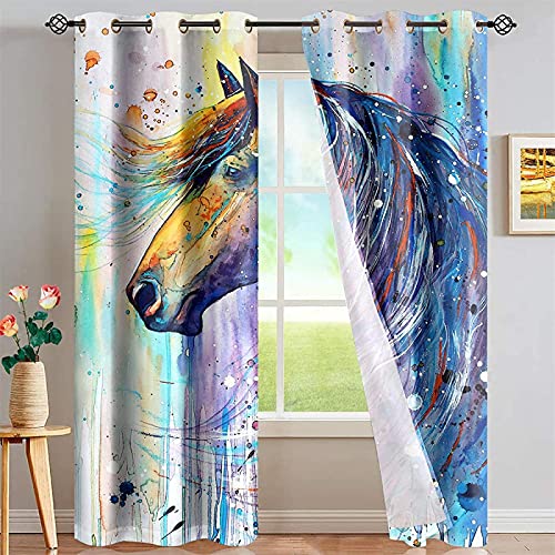 LKCD Rideau Occultant Enfant Peinture Huile Cheval Aquarelle...