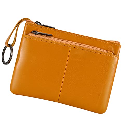 Porte-monnaie cuir marron clair, triple fermeture éclair et...