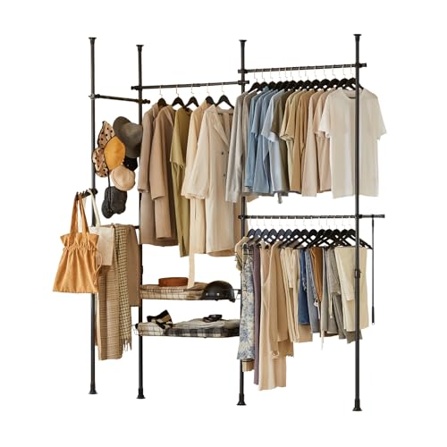 Portant Penderie Télescopique KLS04-Sch avec Barres et Panie...