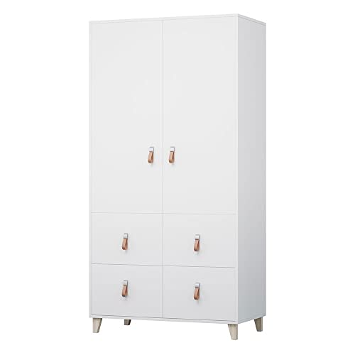 Armoire de Chambre 104x202x55cm Portes Pivotantes et Tiroirs...