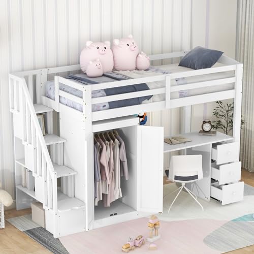 Mezzanine Lit AMDXD 90x200 cm avec penderie, escalier, burea...