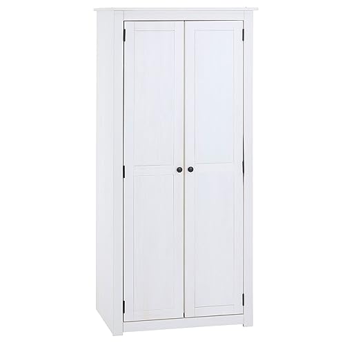 IDexe Armoire Blanche Paulo penderie en pin Massif 2 portes