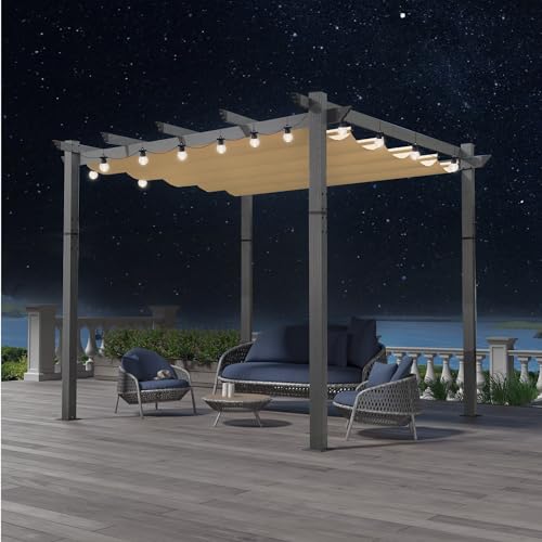 PURLELEAF Grain Bois Pergola Aluminium 3x3m Extérieur Guirla...