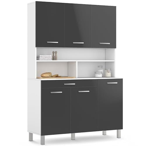 Buffet de cuisine CINA 120 cm structure blanche et portes gr...