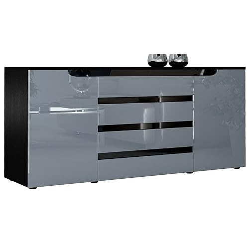 Vladon Buffet Sylt V2 Noir Mat Gris Haute Brillance