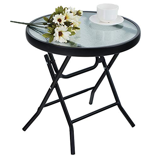 PHIVILLA Table de Balcon Ronde Pliable Verre et Métal