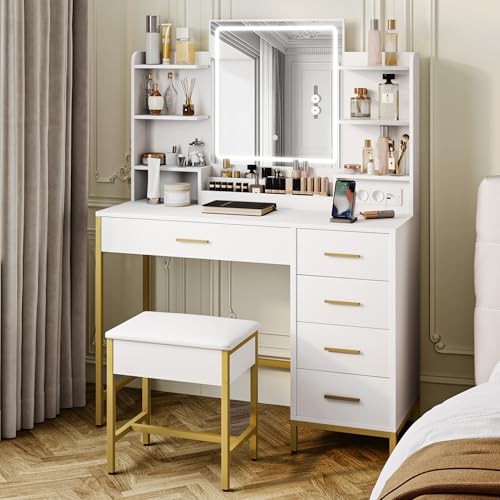 Hzuaneri Coiffeuse HD avec Tabouret et Miroir, 5 Tiroirs