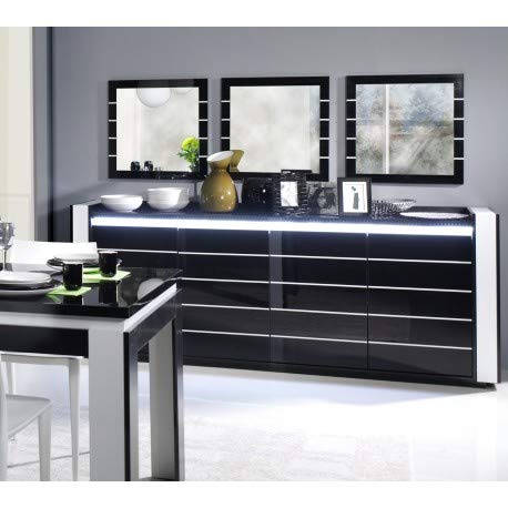 PRICE FACTORY Buffet LED Infilade Noir et Blanc 3 miroirs