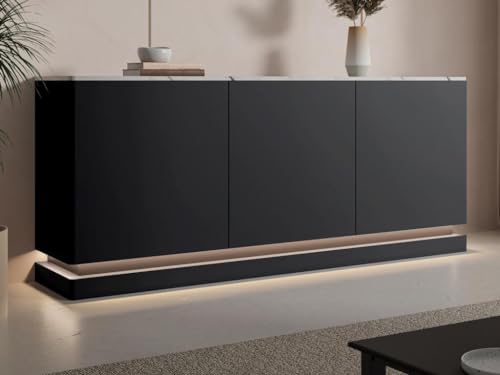 PASCAL MORABITO - Buffet 3 Portes avec LEDs en MDF - Noir et...