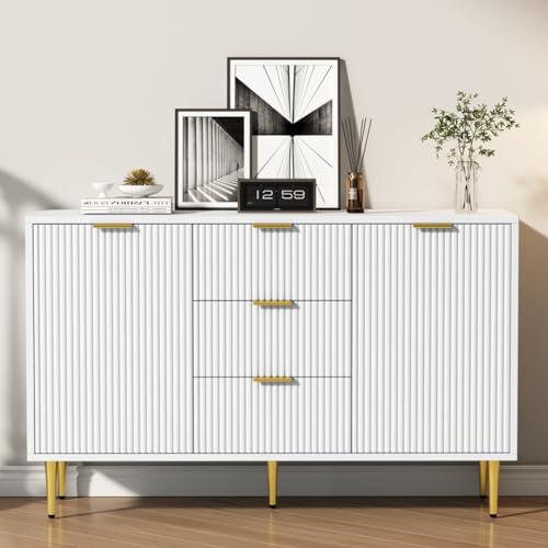 KOMHTOM Commode blanche avec deux portes et trois tiroirs, a...
