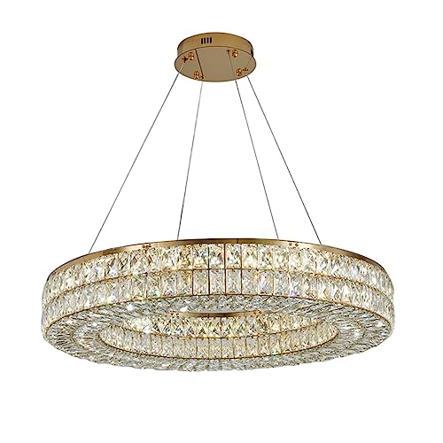 Lumière cristalline LED chandelier moderne à anneau en acier...