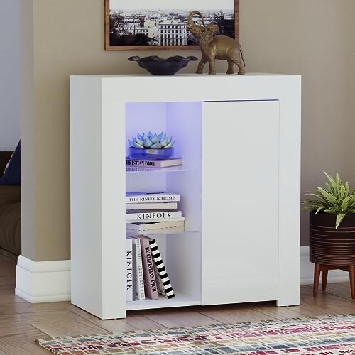 Vida Azura Buffet LED moderne à 1 porte, blanc RVB, brillant...