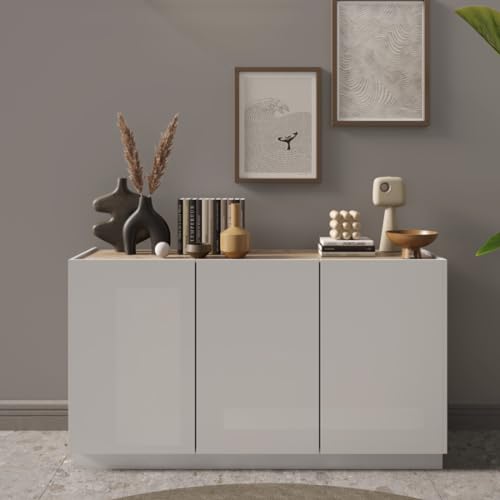 Buffet 3 Portes Blanc Brillant Chêne Naturel Imola L155 x 40...