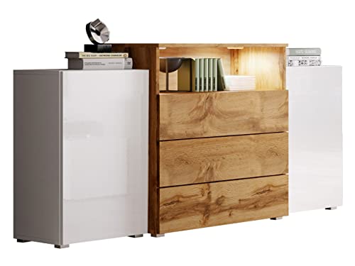 Vladon Buffet La Paz V2 Blanc Haute Brillance/Blanc Haute Br...