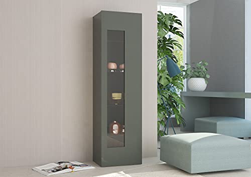 Meuble colonne vitrée Dmora Buffet 45x34h162 cm Anthracite b...