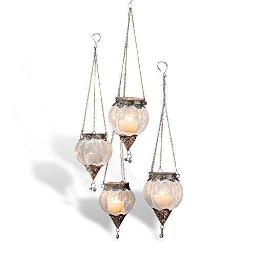Métal Argent Photophore Jardin Décoratif Suspendu Lanterne d...