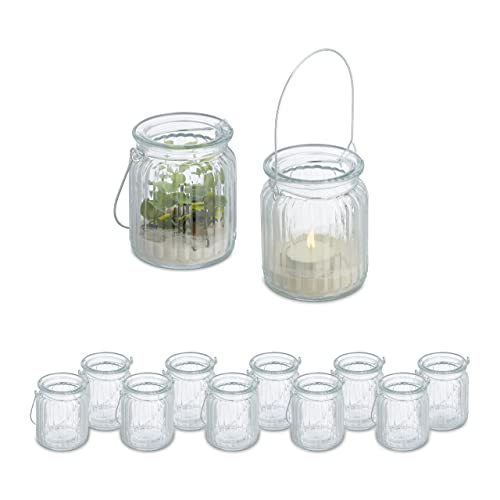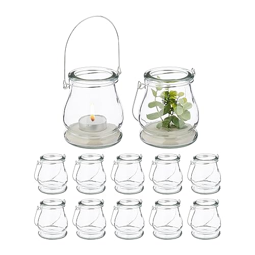 Relaxdays Photophores, Lot de 12, Anse, intérieur & extérieu...