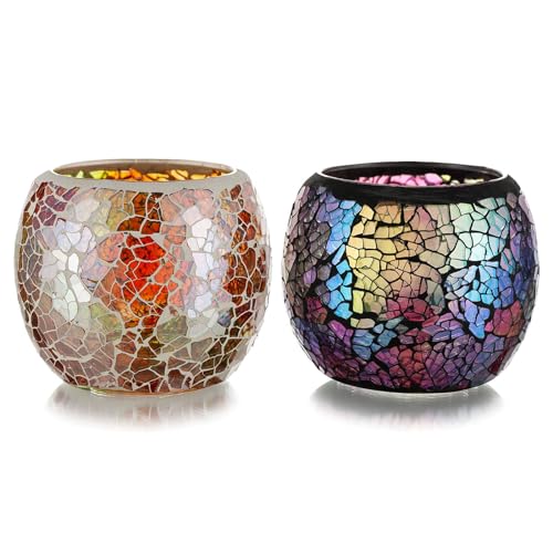 Romadedi Mosaïque Bougeoir Photophore Verre - Lot de 2 Color...