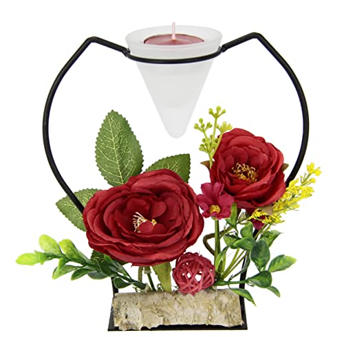 Bougeoir décoratif en métal avec Insert en Verre et Fleurs a...