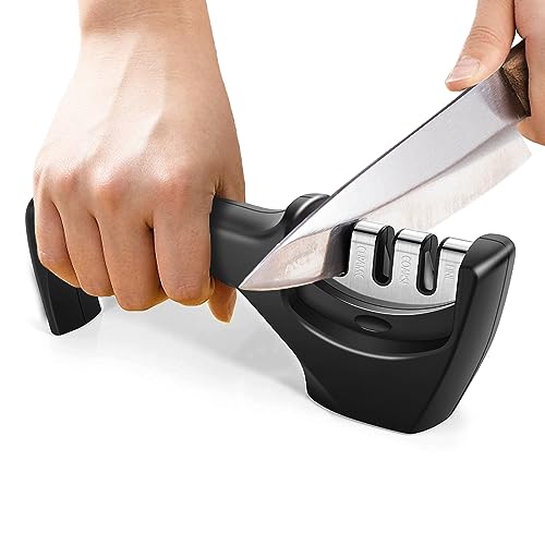 Kazigak Aiguiseur de couteaux manuel à 3 niveaux pour polir,...