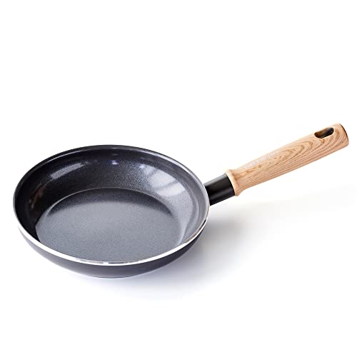 Green Vintage Ceramic Fryer Pot 20cm, Antiadhésif, Bois