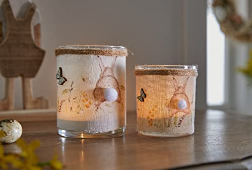 Lot de 2 photophores en verre avec motif lapin sur toile de...