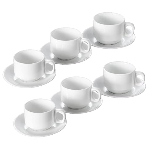 Lot d'espresso blanches 6 tasses, soucoupes céramique lavabl...