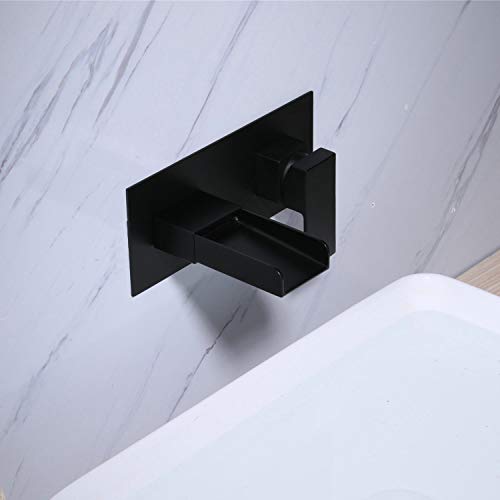 Noir Mat Robinet Lavabo Mural Mitigeur Cascade en Laiton
