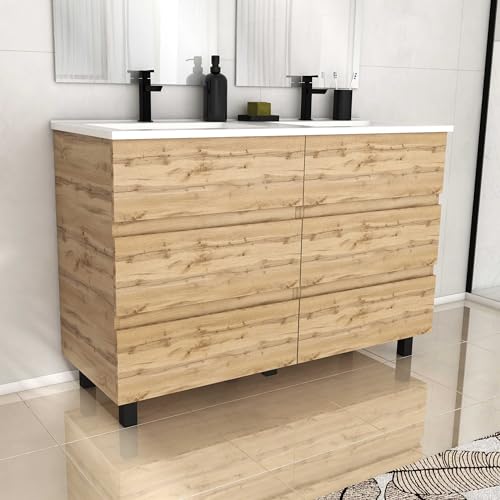 Aurlane Meuble Salle de Bains 120cm Tiroirs Chêne Naturel Va...