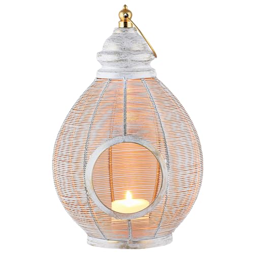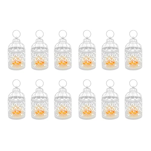 Photophore en Métal Blanc Suspendu Lanterne Cage à Oiseaux C...
