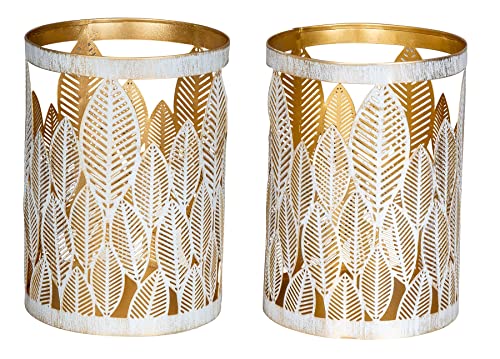 Lot de 2 photophores 13 x 18 cm - En métal blanc et doré - D...