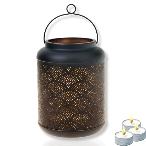Flanacom Lanterne décorative Noir et doré Photophore métal