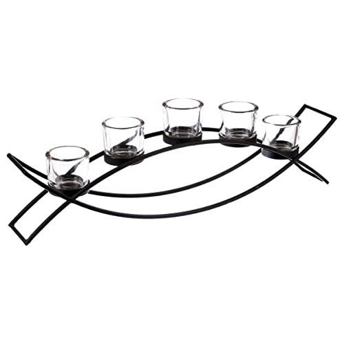 Photophore noir naturel en métal - Décoration de table - Déc...
