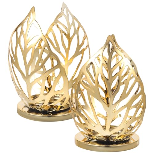 PRETYZOOM 2 Pièces Bougeoir Feuille Creuse Photophore en For...