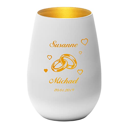 Photophore en verre blanc/doré avec gravure au choix – Motif...