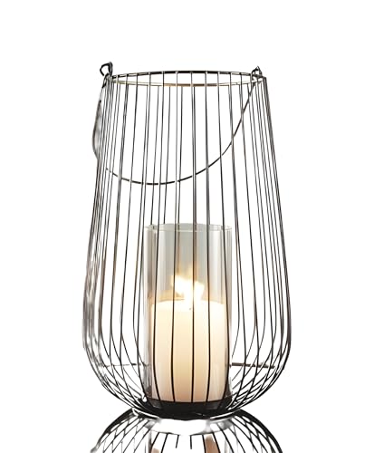 Grand photophore rétro en métal noir/doré, 34 cm de haut, la...