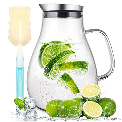 Susteas Carafe 2L Verre, Couvercle, Pichet, Boisson Maison
