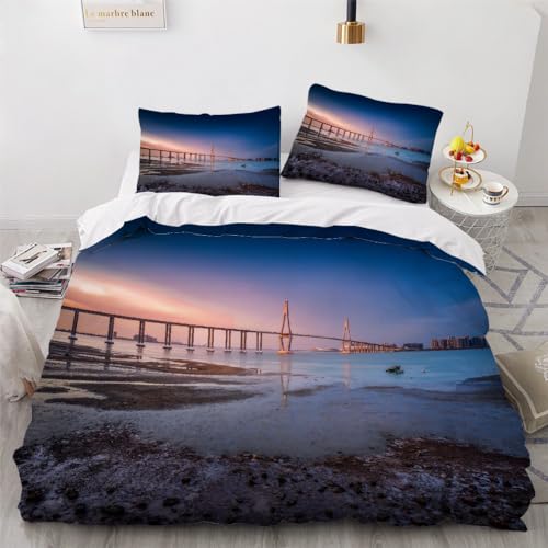Housse de Couette 240x260 Plage Pont 3D Imprimé Parure de li...