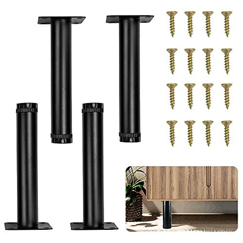 Pieds de Meuble Noir Métal 4pcs Réglables, Pied Canapé Moder...