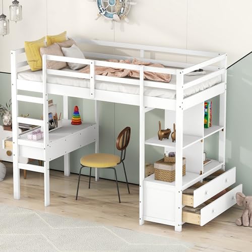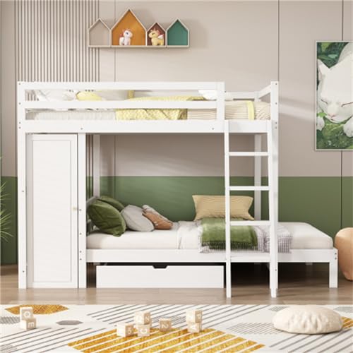 Ntxplora Lit superposé armoire tiroirs enfant pin minimalist...