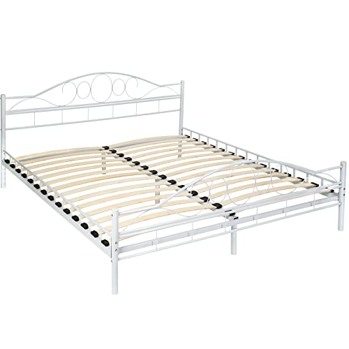 Lit métal TecTake Design Cadre Lattes 140x200cm Blanc