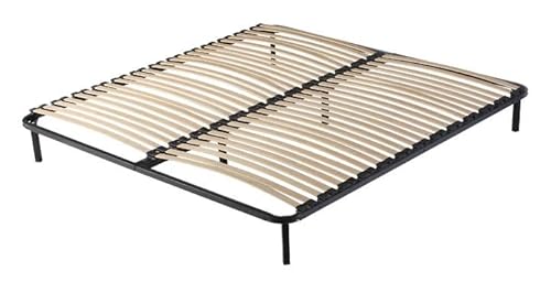 anya - Sommier Noir Cadre a lattes Renforcé et Soutien Régla...