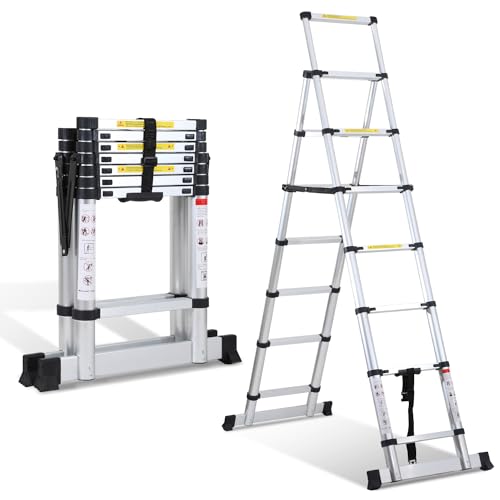 Échelle télescopique 2,3m - 6+7m - Cadre en A - 150kg - Exte...
