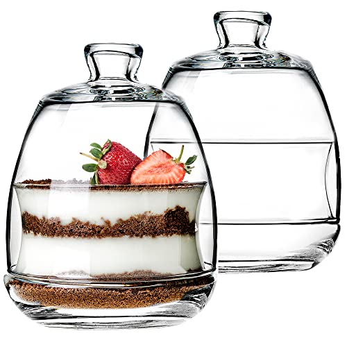 CRYSTALIA Dessert-Verre Set 2, Verre avec Dôme, Pot Cloche