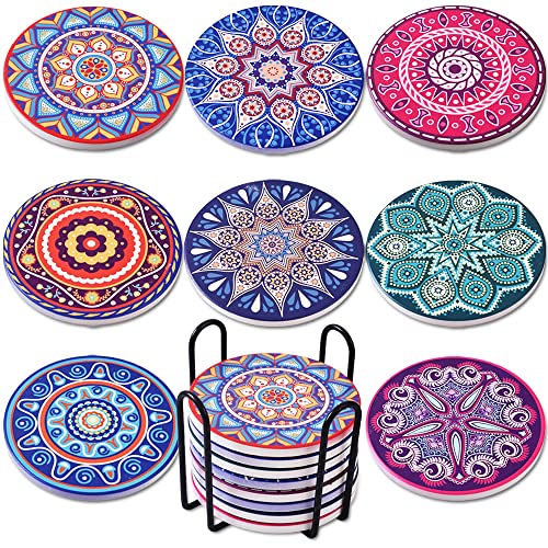 Sous-Verres marbre céramique absorbants 8 ensembles, 4 motif...