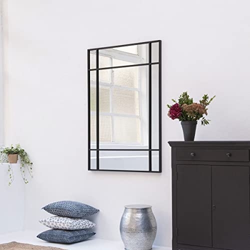 Miroir verrière compartimenté en métal noir façon Art Déco....